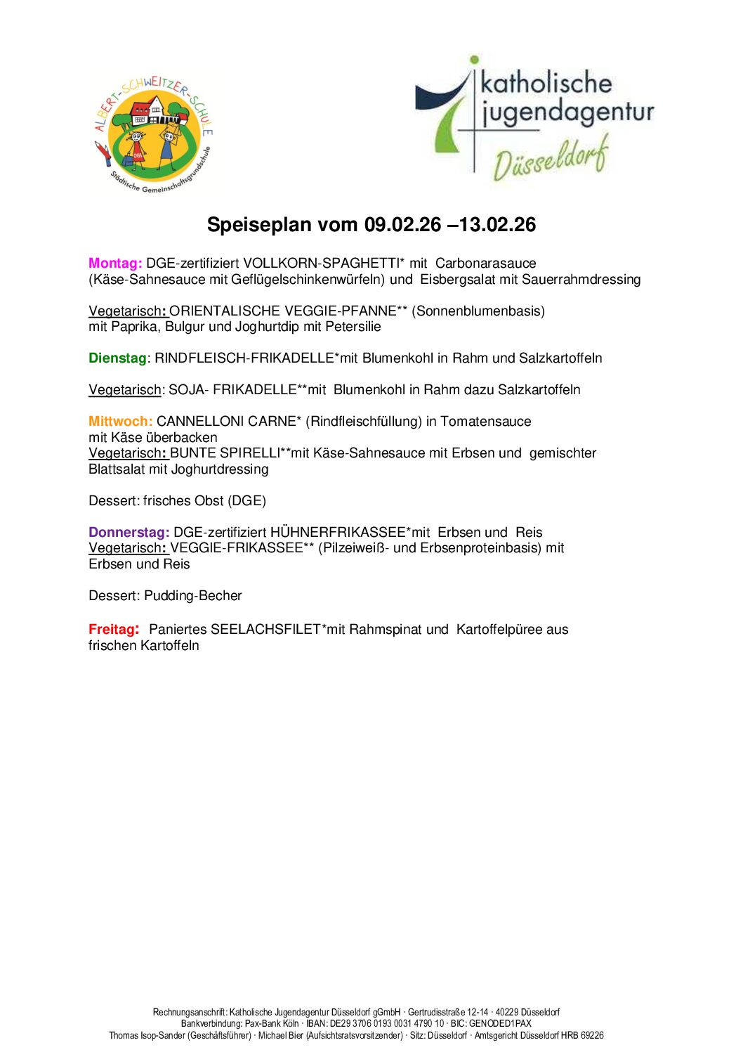 Der aktuelle Speiseplan