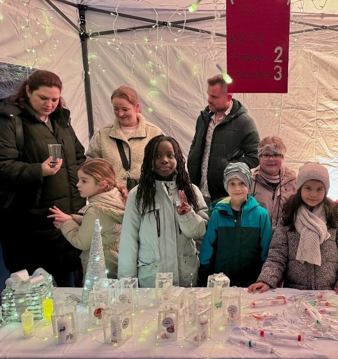 Am 28. November 2025 fand unser traditioneller Weihnachtsmarkt auf dem Schulhof der Albert-Schweitzer-Schule statt. Trotz Regenwetter verkauften die Kinder und Eltern fleißig ihre selbstgebastelten Weihnachtskarten, bunten Kerzen, leuchtenden Weihnachtskugeln und Windlichter, sowie verschiedene Backmischungen aus dem Glas und Trinkschokoladen. Das OGS-Team verkaufte selbstgemachte Marmelade. Für das leibliche Wohl sogten der Förderverein mit Bratwürstchen, Waffeln, Glühwein und Kinderpunsch. Wir bedanken uns herzlich bei allen Mitwirkenden, die sowohl bei den Vorbereitungen als auch Umsetzung so tatkräftig geholfen haben!